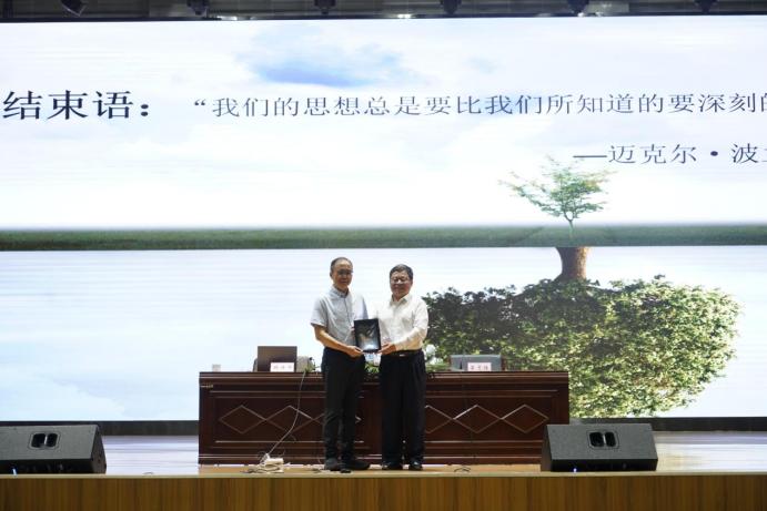 在主持中,吴志强对林建华教授带来的精彩报告表示衷心感谢,并代表学校赠送纪念品。吴志强指出,这次讲座对同学们来说是一次深刻的知识洗礼,希望同学们好好领会,认真感悟,规划好学习时光,成长为有理想、敢担当、能吃苦、肯奋斗的新时代好青年。