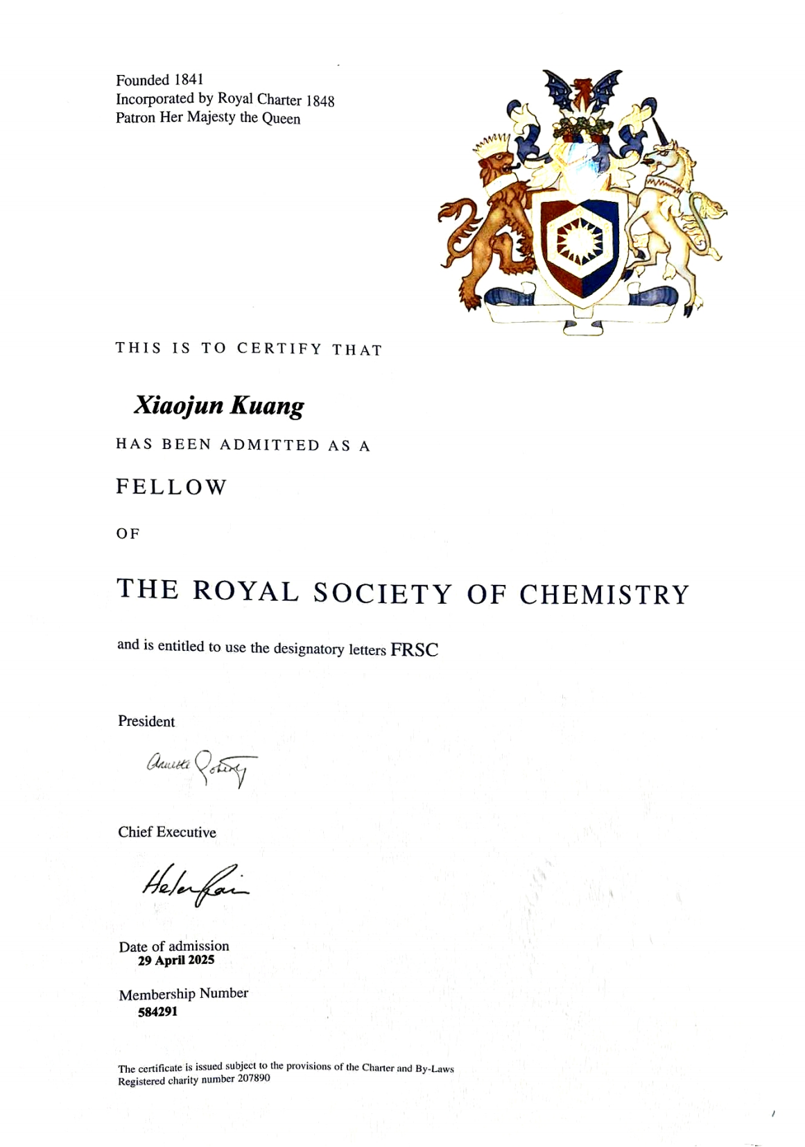 近日,英国皇家化学会(Royal Society of Chemistry, RSC)发来贺信,祝贺SeedHub匡小军教授当选英国皇家化学会会士(Fellow of the Royal Society of Chemistry, FRSC)。