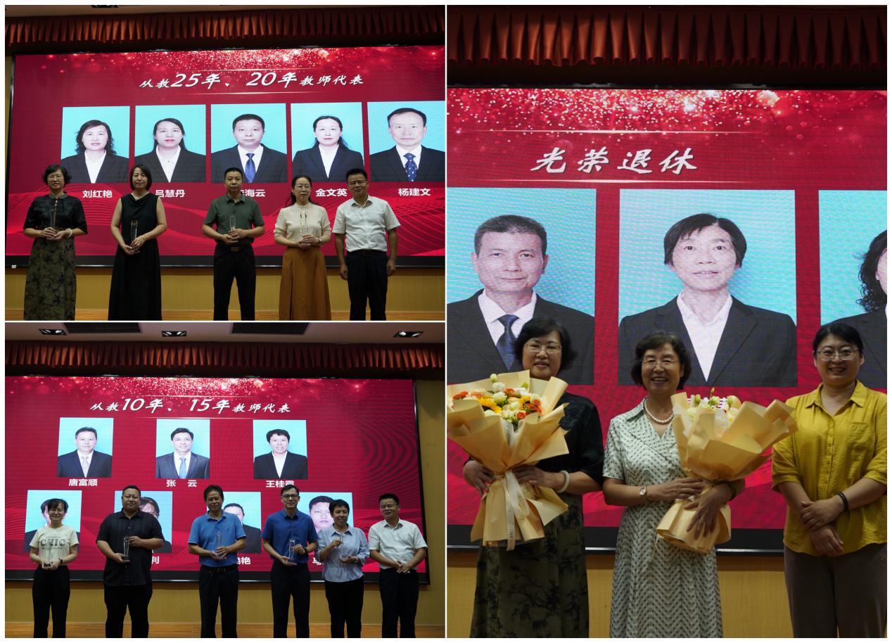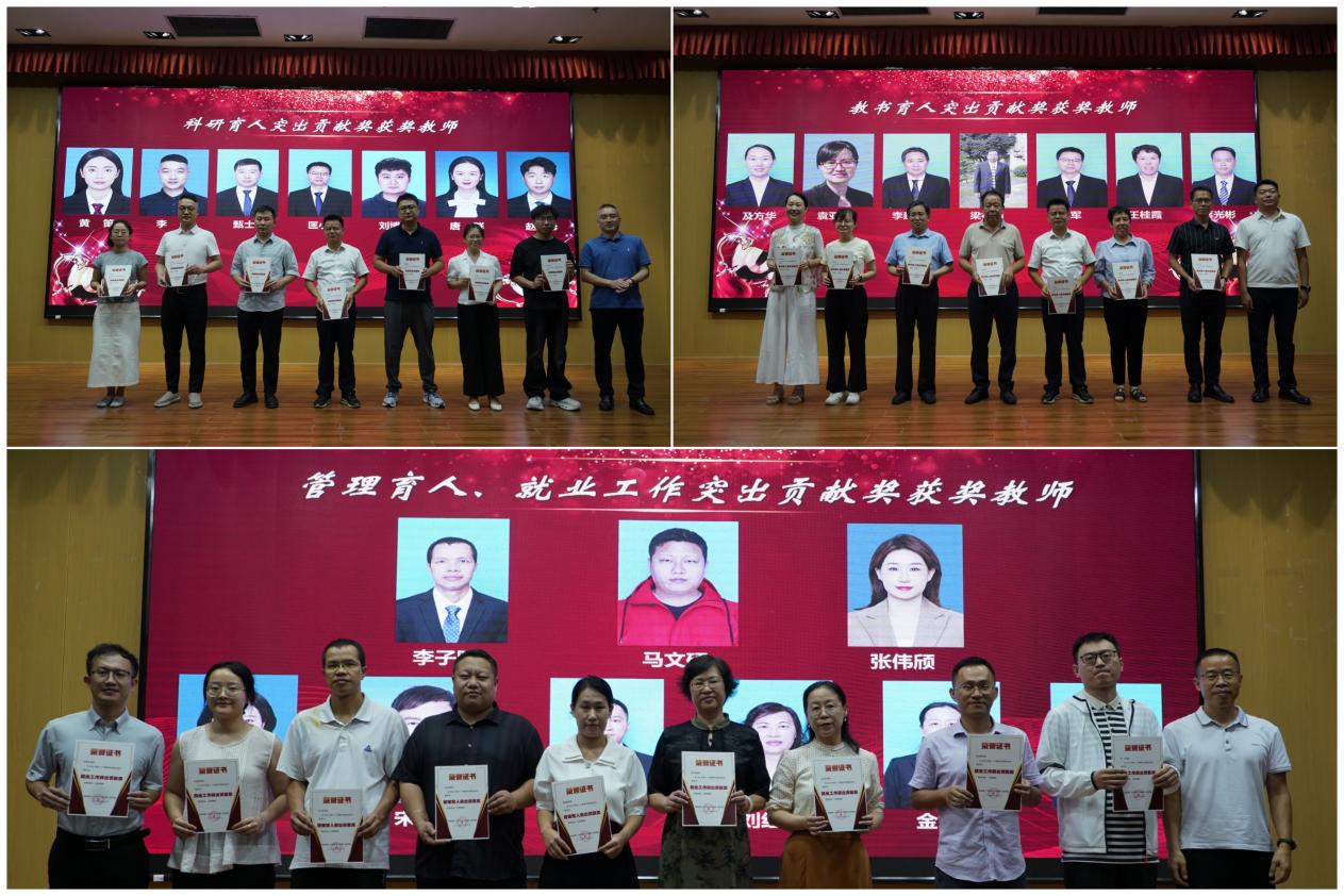 表彰“从教二十五年、二十年、十五年、十年教师”及教书育人、科研育人、管理育人、就业工作突出贡献奖的决定》并举行了表彰仪式,台下掌声雷动,这既是对获奖者的祝贺,也是对全体教师默默奉献的礼赞。获奖教师代表余彩莉在发言中分享了自己从教多年的心得与感悟,表示将始终坚守立德树人初心,号召全体老师以教育家精神为指引,不断探索教育教学改革,当好学生成长的引路人。