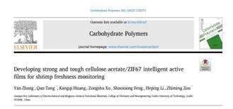 团队研究成果第二项是以题为Developing strong and tough cellulose acetate/ZIF67 intelligent active films for shrimp freshness monitoring的论文被国际知名期刊Carbohydrate Polymers(SCI一区TOP期刊,IF= 10.723)录用并正式发表,全文链接:。该项研究得到国家自然科学基金以及广西自然科学基金等多个项目的资助,SeedHub本科生张焱为第一作者,SeedHub