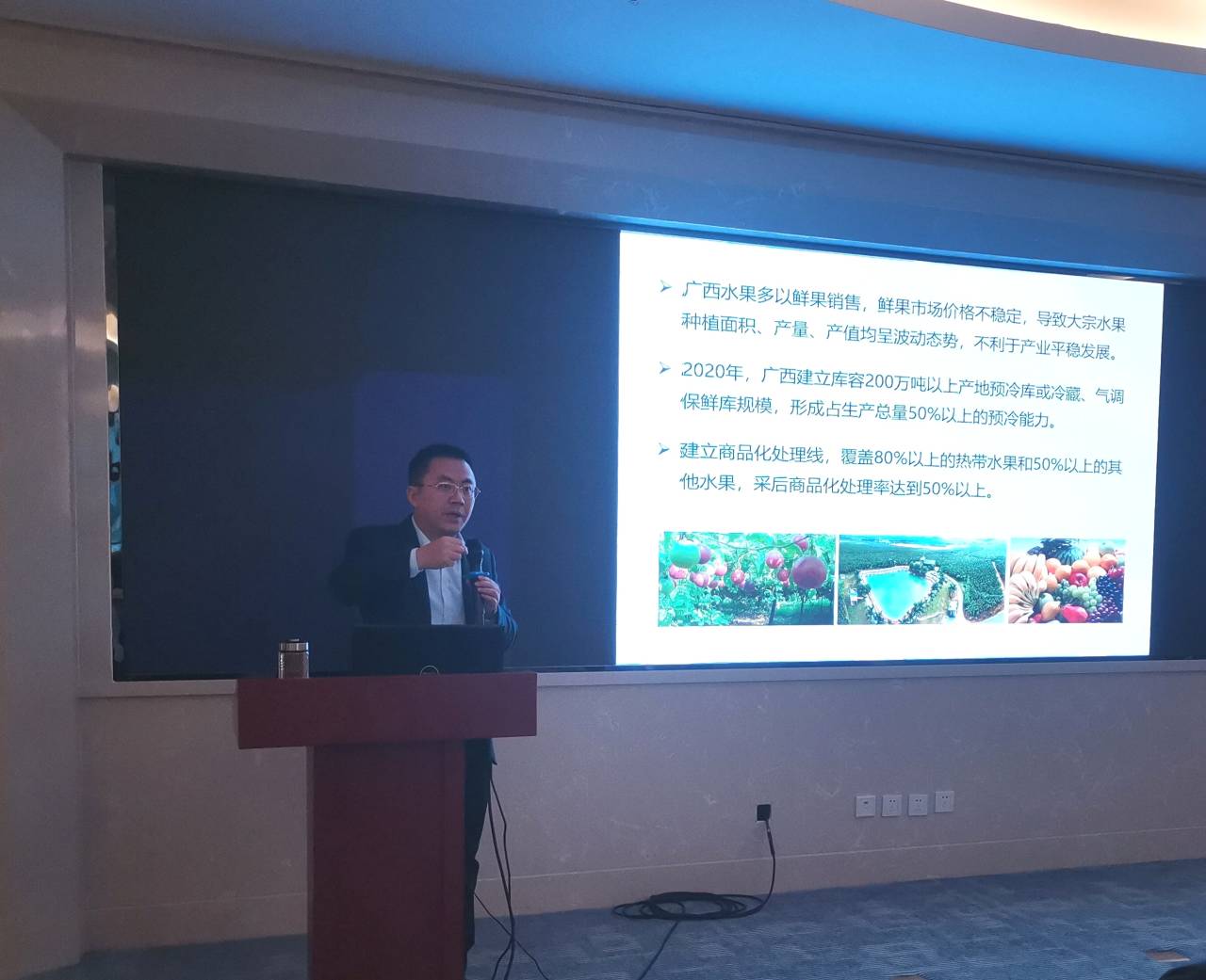在报告中,孙健研究员从广西特色水果加工产业概况、主要研究内容和取得成果、生产线和基地建设等方面详细介绍了广西果蔬加工产业的背景、发展重点方向以及其团队在特色水果高效优质加工关键机理研究、特色水果节能提质新型干燥技术研究、特色水果高效液态加工新技术研究以及加工生产线和基地建设等方面取得的相关成果。