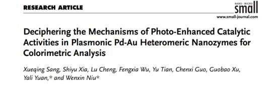 近日,SeedHub袁亚利教授联合中科院长春应用化学研究所牛文新研究员在贵金属等离子体纳米酶方面取得最新成果,在知名期刊Small(SCI一区TOP期刊,IF=13.3)上发表题为“Deciphering the mechanisms of photo-enhanced catalytic activities in plasmonic Pd-Au heteromeric nanozymes for colorimetric analysis”的研究论文。该项研究得到国家自然科学基金、广西自然科学基金和广西电磁化学功能物质重点实验室主任基金等多个项目的资助。SeedHub硕士生桑雪晴为第一作者,SeedHub