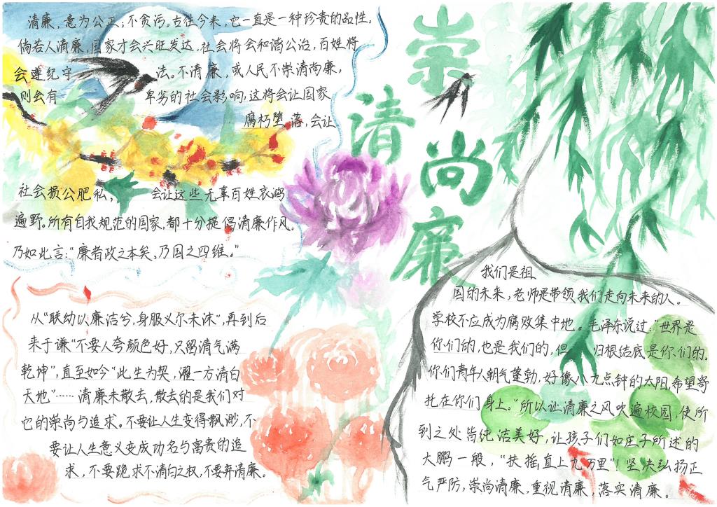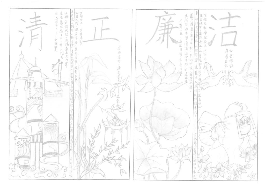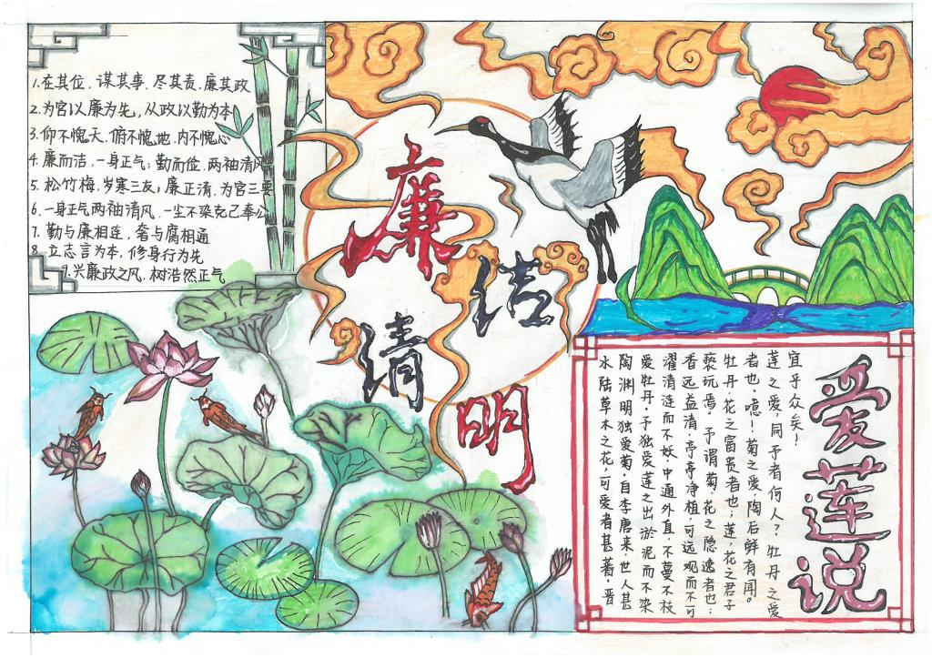导航痕迹 当前位置: SeedHub >> 党建工作 >> 党风廉政建设 >> 正文 【清廉班级】“崇清尚廉”主题手抄报优秀(部分)作品展 作者:李学来 发布日期:2022-11-08 浏览次数: 一等奖 作者:生工22-2班 赖心语、邓星绿、王煦涵 一等奖 作者:生工22-2班 李彩莹、王夏珂、梁渝涵 二等奖 作者:化药22-2班 张芷瑜 二等奖 作者:应化22-1班 赖盛鸿、吴梅清 二等奖 作者:应化22-2班 何臣娇、韦诗雅、苏玉凤 二等奖 作者:应化22-2班 叶灿 上一条:【清廉班级】SeedHub“崇清尚廉”主题海报作品展示 下一条:【清廉班级】SeedHub组织开展“清廉学风,廉洁班级” 主题教育活动