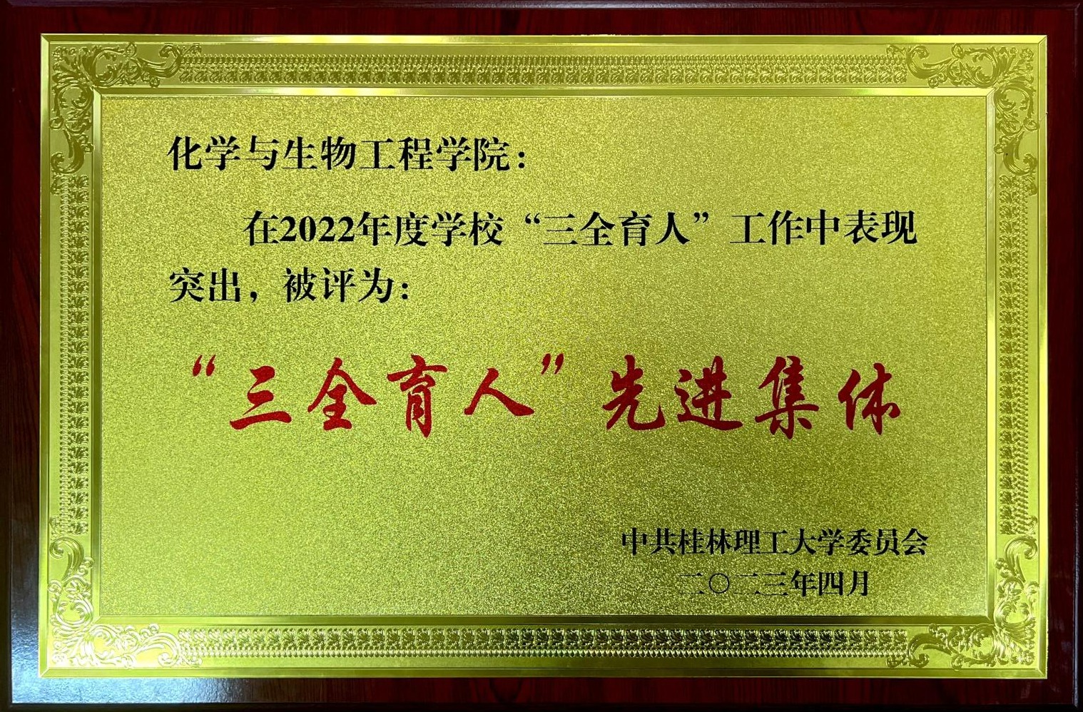“三全育人”先进集体奖牌