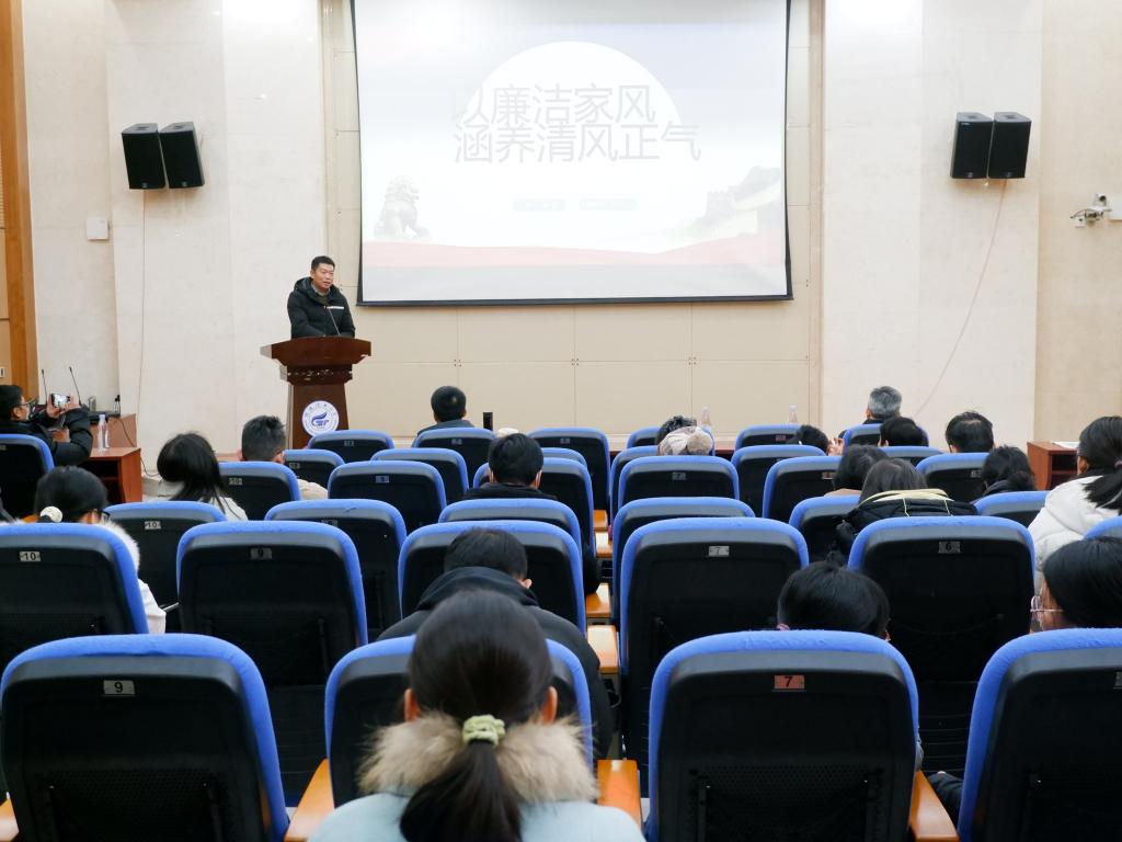 党委书记彭代江在雁山校区萃华楼报告厅为全体教职工上“以廉洁家风涵养清风正气”专题党课。