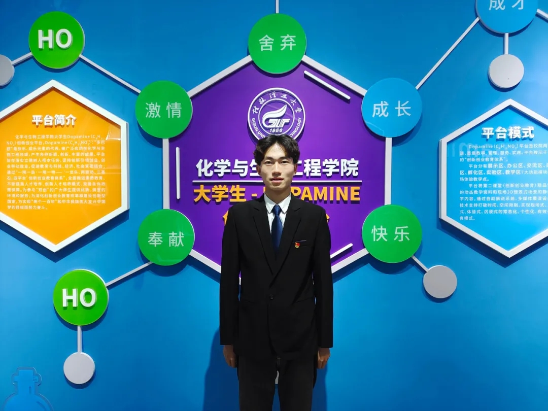三好学生、优秀团员等荣誉称号。他经常帮助同学解决各种困难,帮助老师完成各项工作。在学科竞赛上,他积极参加大学生创新创业,并参与了一个国家级大创项目,公开发表专利1篇——《一种三乙烯二胺衍生物手性催化剂及其合成方法》。