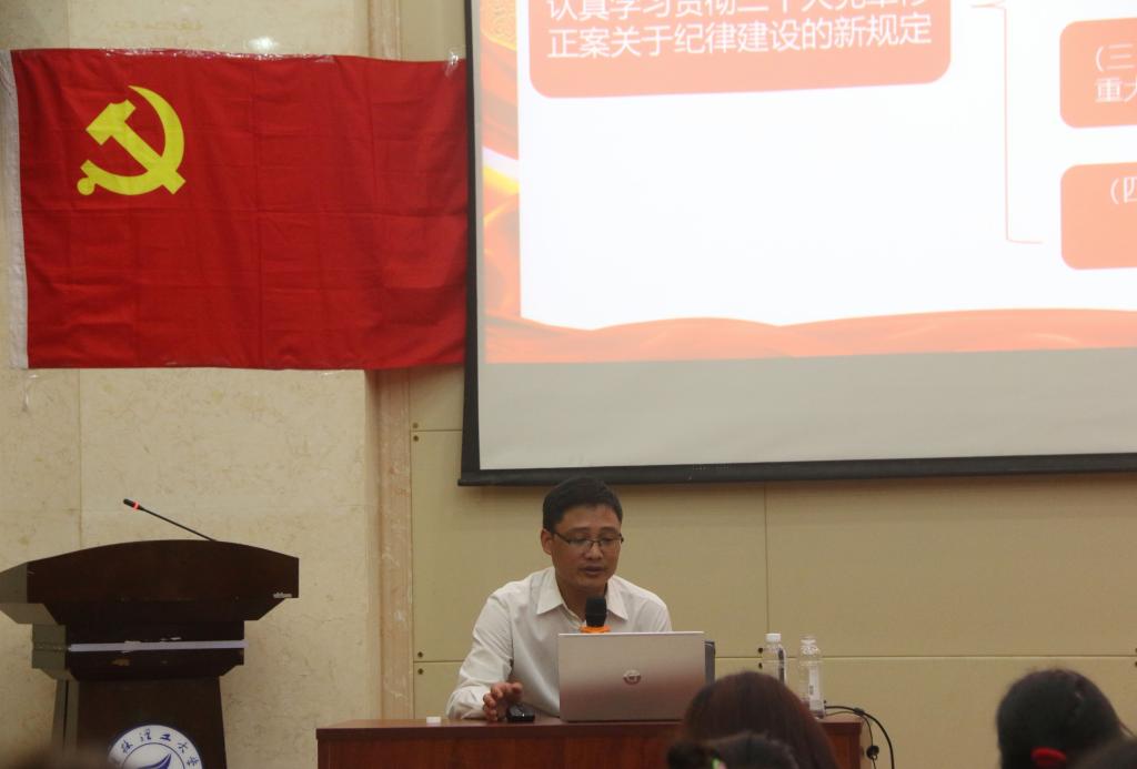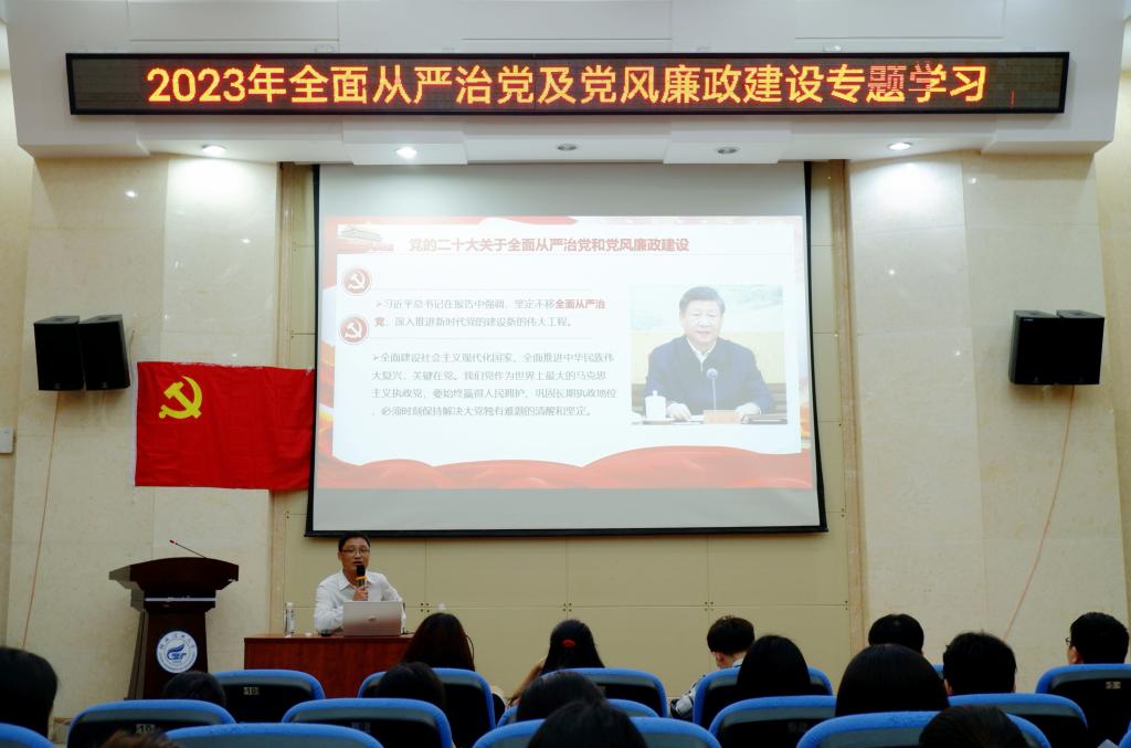 党课过程中,李老师以全面从严治党及党风廉政建设为题,从党的二十大关于全面从严治党和党风廉政建设遵守党章纪律红线不可逾越筑牢廉政思想根基做到忠诚干净担当永葆廉洁心走好职场路四个方面,结合生活实际和典型案例,教育引导全体毕业生党员要时刻牢记入党誓词,强化底线思维和红线意识,把廉洁作为一种生活方式,作为一种精神境界去追求,开启人生新征程。