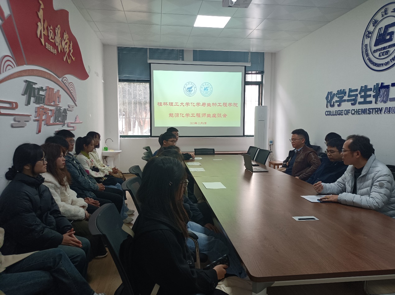 为进一步加强师生之间的沟通交流,提升本科生对专业的认同感,能源化学工程教研室于2023年12月8日中午在雁山12115会议室举行了师生座谈会。教研室主任黄斌副教授主持了座谈会,能源化学工程教研室温玉清教授、陆振欢教授、辅导员张伟颀老师以及能源化学工程专业2021、2022和2023级学生代表参加了座谈。